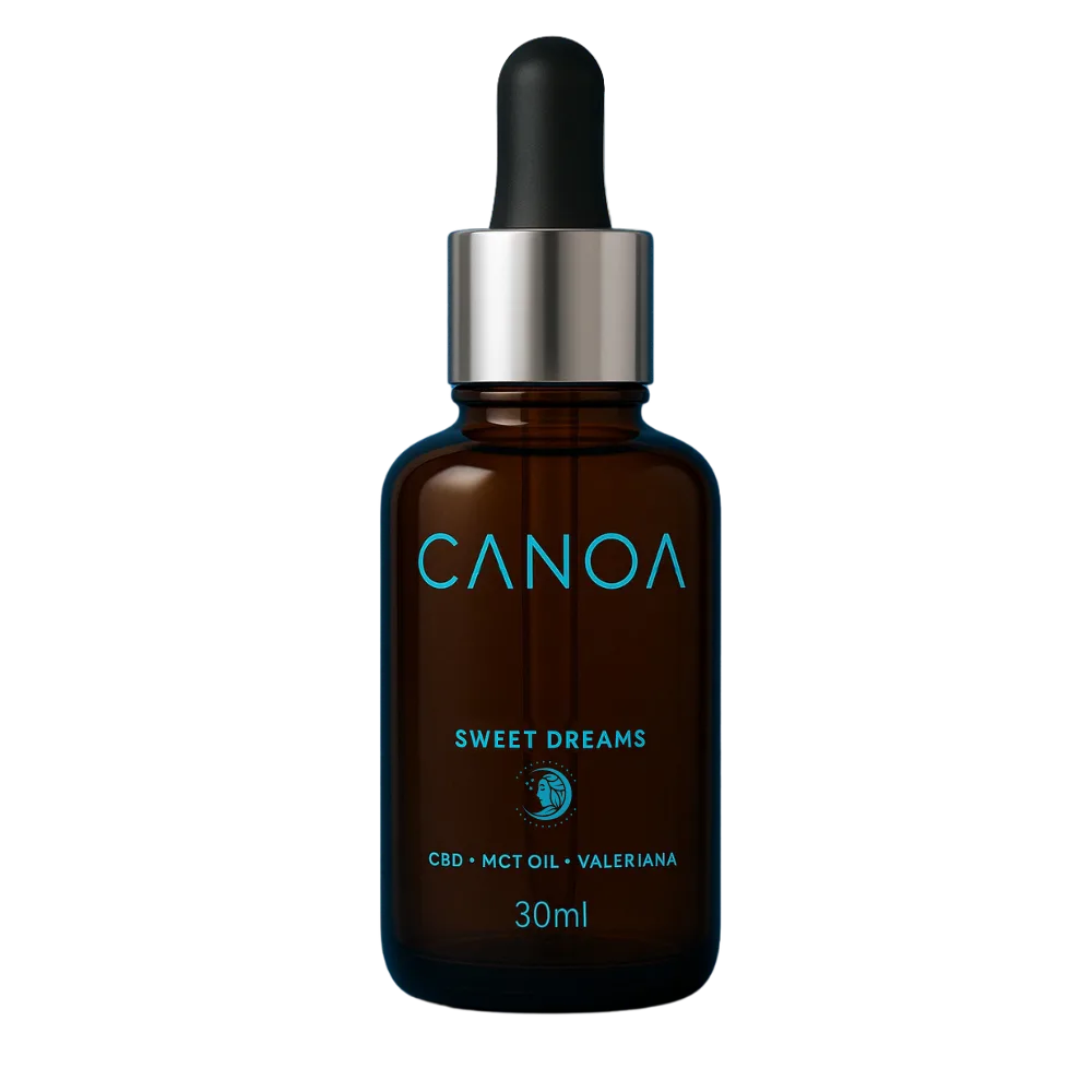 En CANOA Labs creamos el aceite MCT con CBD Sweet Dreams para ayudarte a alcanzar un sueño profundo y reparador. Su fórmula combina un 5% de CBD con aceite MCT, Linalol y Valeriana, ingredientes naturales que potencian el efecto calmante del CBD e inducen el sueño de manera natural.