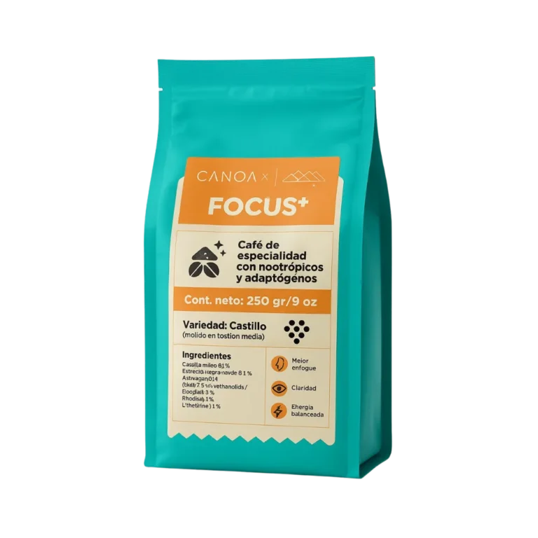 Junto a Entre Montañas creamos un de café de alto desempeño, el cual es claridad y productividad en cada sorbo. Café de especialidad infusionado con tres suplementos reconocidos (Ashwagandha, Melena de León y L-Teanina) para darte enfoque y cognición mejorada, energía sin picos, y claridad mental sin los típicos altibajos de la cafeína. Ideal para fluir con intención y determinación hacía tus objetivos.